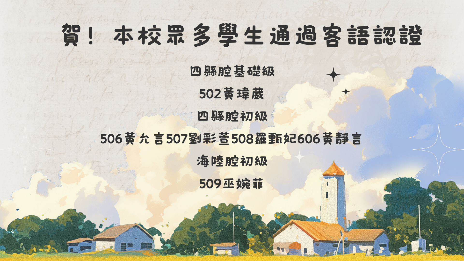 506黃允言 507劉彩萱 508羅甄妃 606黃靜言